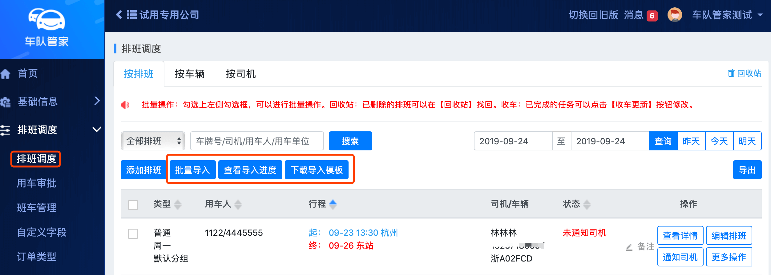 Step2:点击排班调度-批量导入按钮,将新的订单表格导入即可。