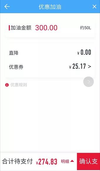 确认订单信息无误后,提交支付申请,优惠加油就完成啦。