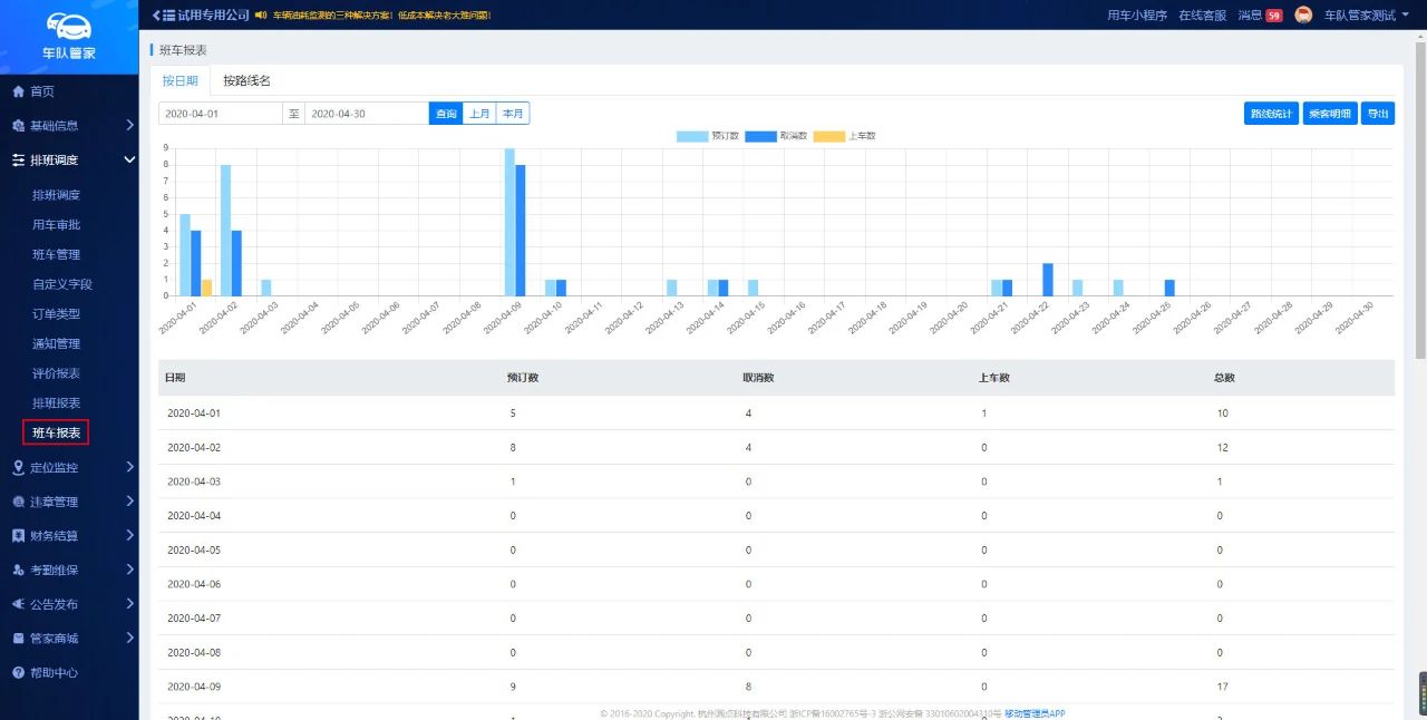 ■ 场景:全面的多维度班车报表分析,提供后台数据支撑,提高用车使用率。 ■ 端口:网页PC端支持。 ■ 功能:路线统计,支持乘客明细数据导出,上车预订数据分析。