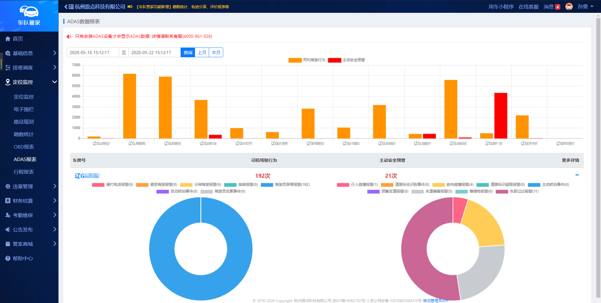 ■ 场景:行程任务结束后,系统自动生成行程报表分析,管理员可查看车辆的时速报表,避免数据统计费时费力。 ■ 端口:管理员APP端、电脑网页端。 ■ 功能:自动生成报表、数据导出、趟数统计、多维度统计分析。