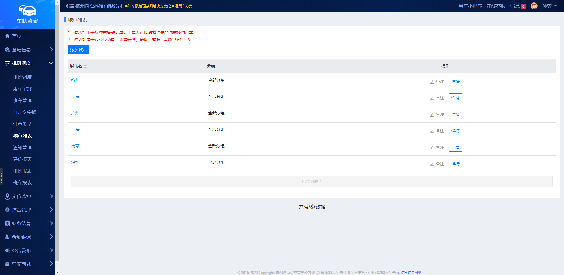 场景:如车队在多个区域都有业务,则管理员后台可相应的添加多个区域,用车人可选择指定的区域预约用车,管理员根据城市列表进行订单管理。 路径:管理员网页端--排班调度--城市列表--添加城市