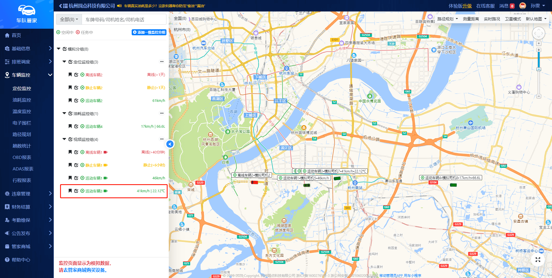 场景:若车辆已安装温度传感器,管理员可直接在定位监控列表中查看车厢内的温度变化。