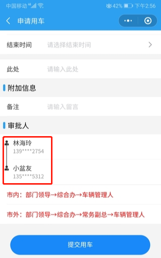 场景:为精简流程标准,管理员可联系对应客服设置专属审批流,用车人无需手动添加审批人。