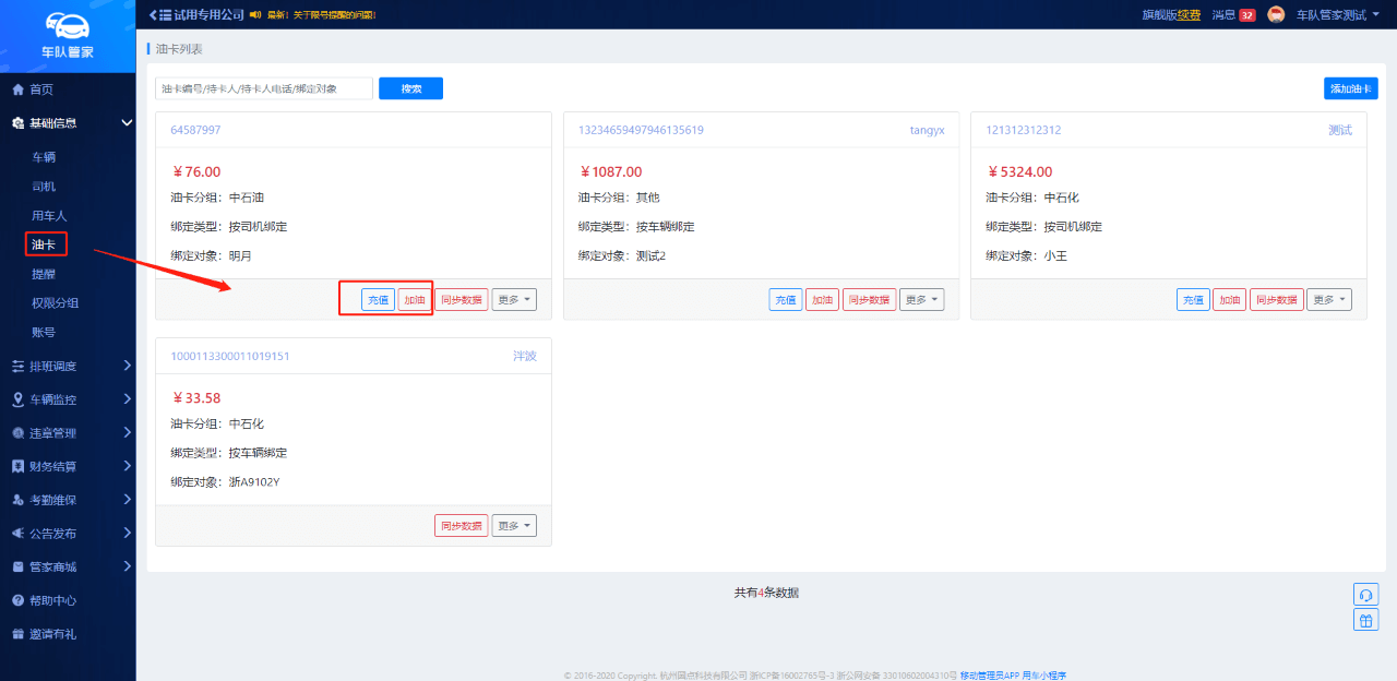 目前,中石化所有相关数据已可实时同步至车队管家系统,今后还会陆续接入中石油等油卡数据。