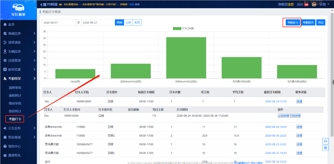 为告别传统考勤机,满足单位智能化统一管理的需求,车队管家近期即将推出考勤打卡新功能,司机只需一键签到即可完成打卡操作,管理员也可在后台添加考勤补卡,方便人员管理。