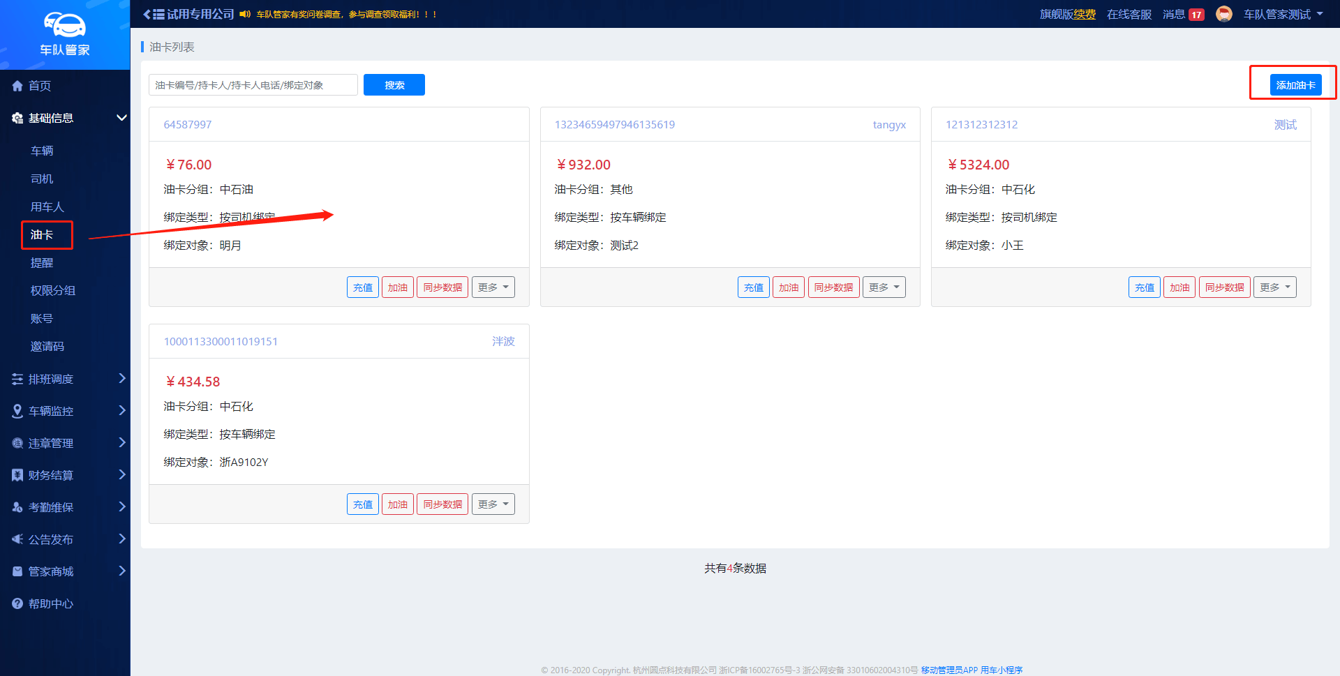 车队管家和中石化官方数据打通后,很多使用其他油卡的小伙伴表示相当羡慕。在我们的疯狂催促下,中石油的数据也终于打通啦!所以,目前两桶油的油卡数据,都可以实时同步到车队管家系统了!