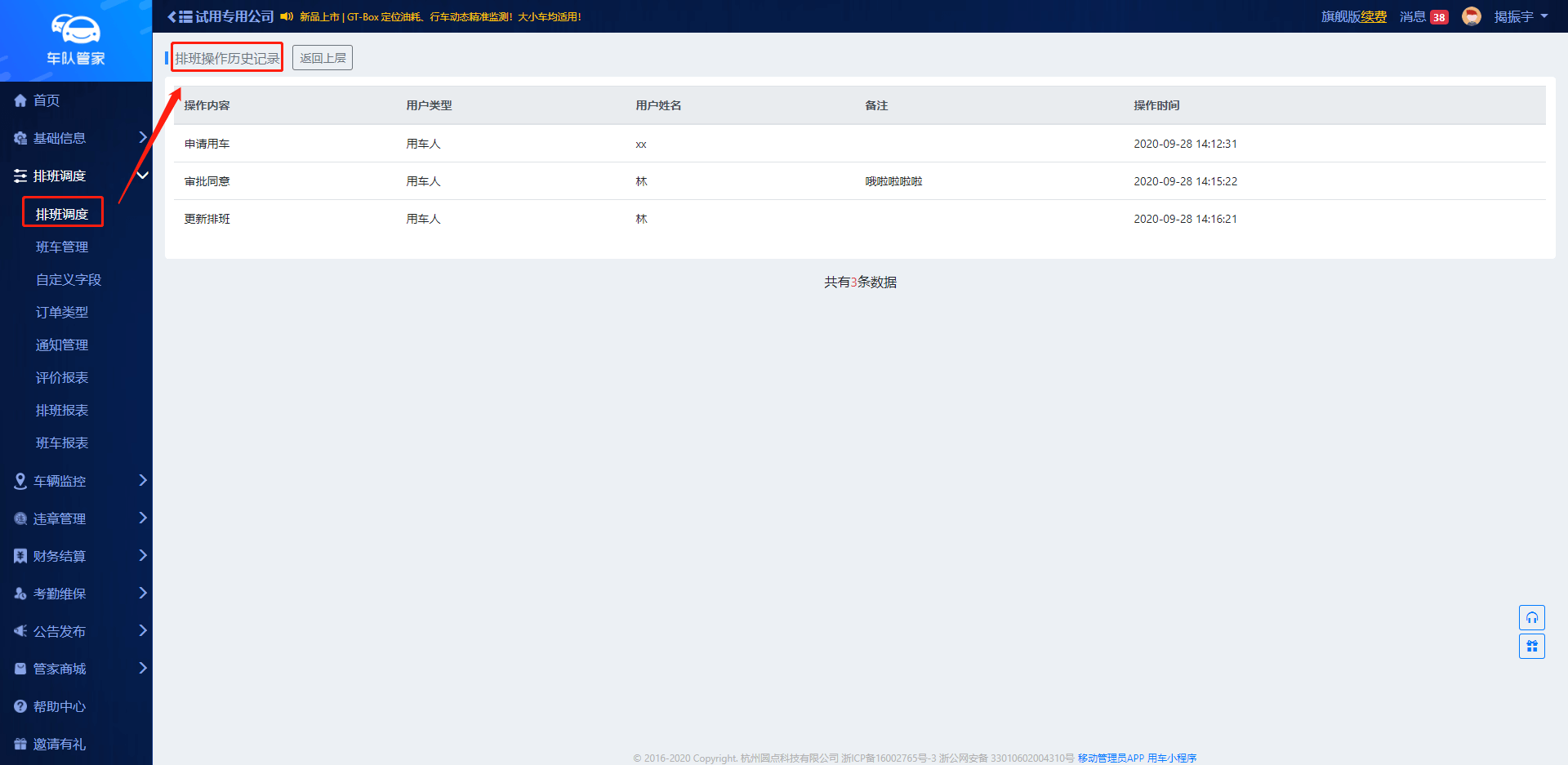 行程任务结束后,系统除了自动统计行驶里程数外,现还可自动统计任务车辆的行驶时长。该字段还可随调度报表其他字段一起导出,方便管理员后期统计分析。