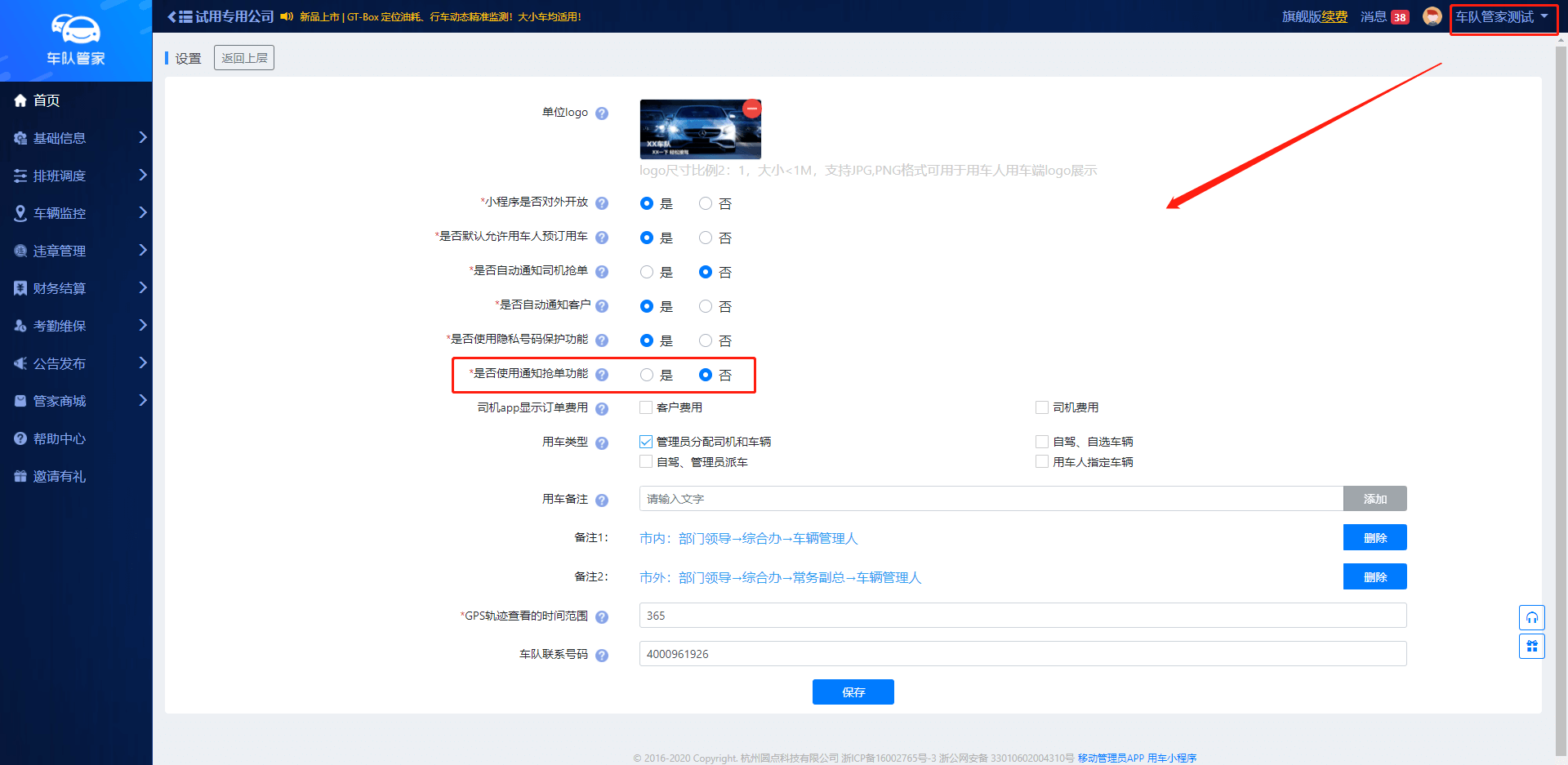 设置路径:右上角用户--设置--是否使用通知抢单功能