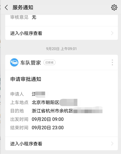 用车人提交用车审批后,系统将自动通过微信提醒对应的审批人审批用车单。