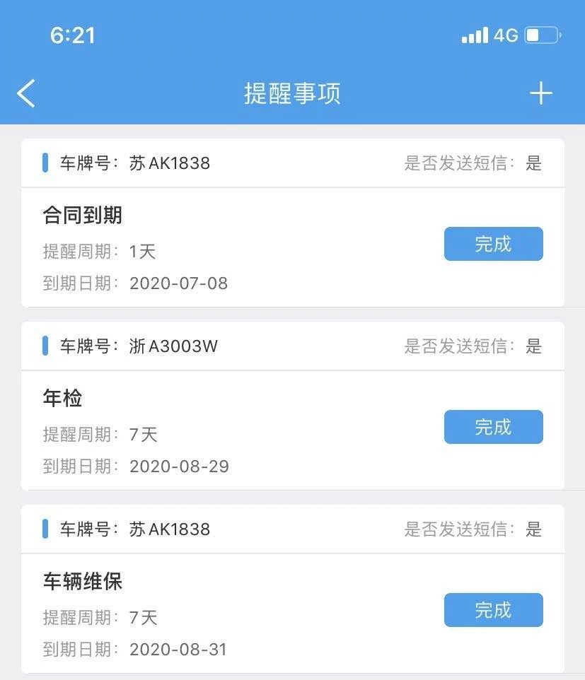统一设置相关提醒,包括车辆年检、保险、保养或驾驶证到期提醒时间等,谨防重要信息遗漏,提升日常工作效率。
