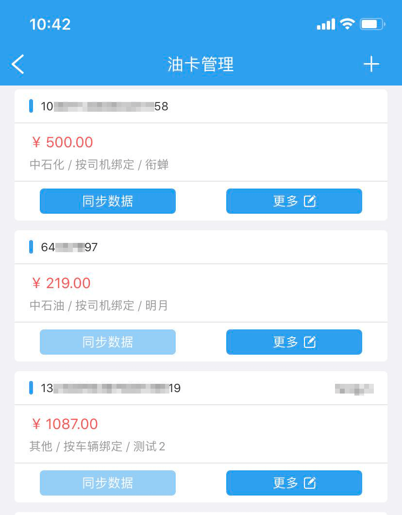油卡功能支持基础档案管理、自动同步中石化/中石油数据,财务模块自动更新油费相关数据,确保交易数据传递及时,实现油耗自动化管理。(油卡自动同步数据需要开通基础版软件,如需了解更多详情,您可在线咨询)