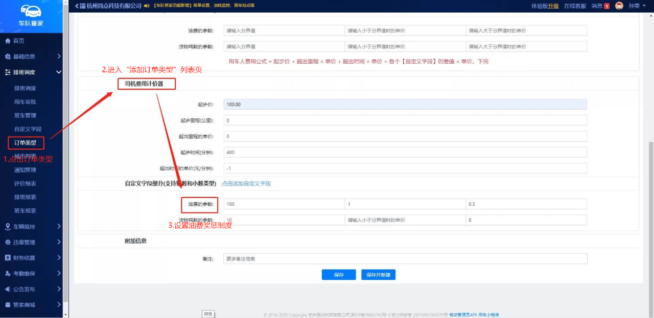 通过计价器设置油耗奖罚,计算每趟任务的费用及司机工资。