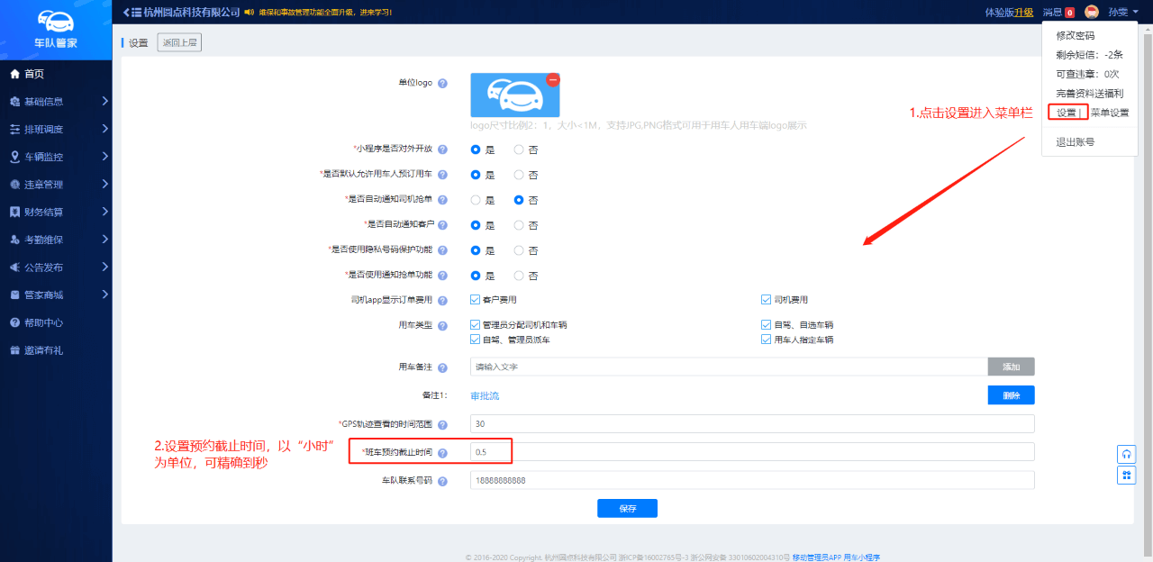路径:管理员网页端--右上角用户--设置--班车预约截止时间
