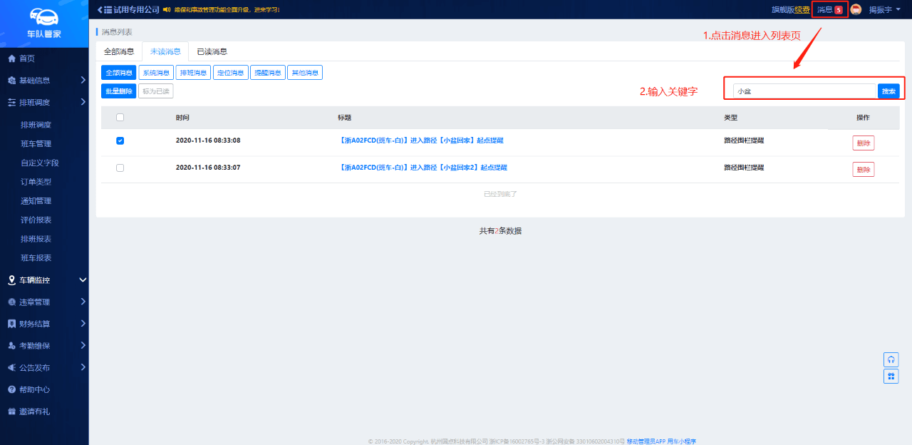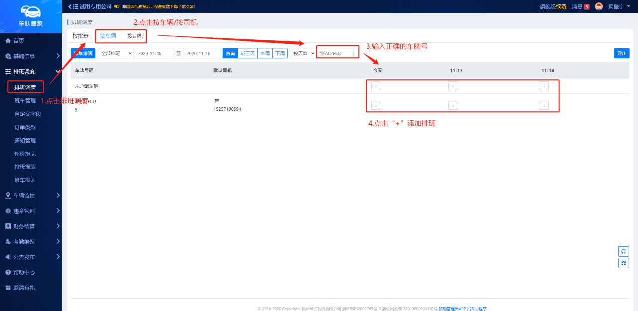 路径:管理员网页端--排班调度--按车辆/司机--搜索