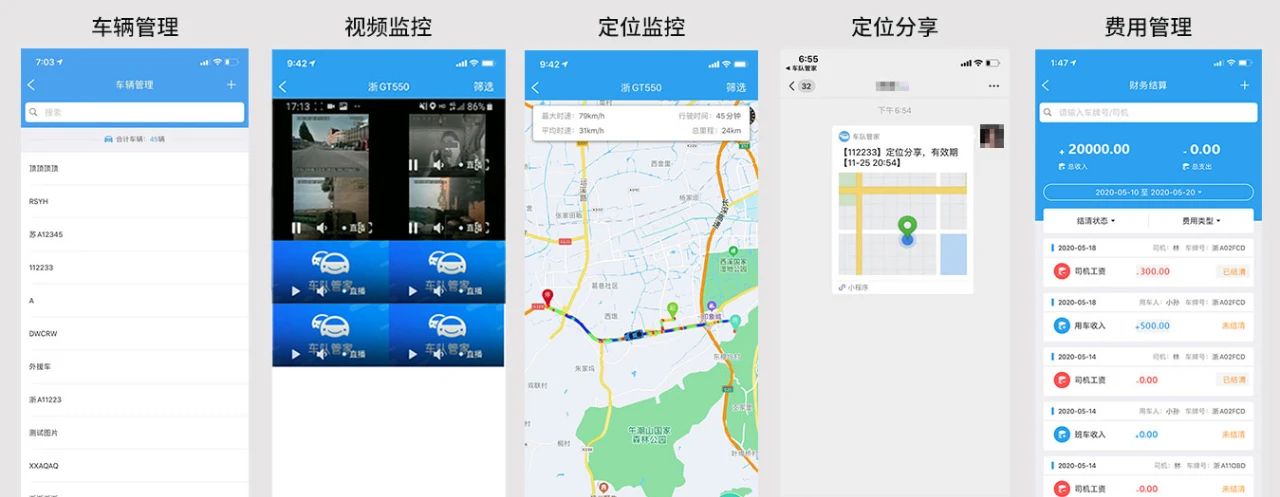 ●管理员端可通过视频监控、定位监控、轨迹回放等功能实时查看车辆的运行状况,后台还支持微信分享实时定位;