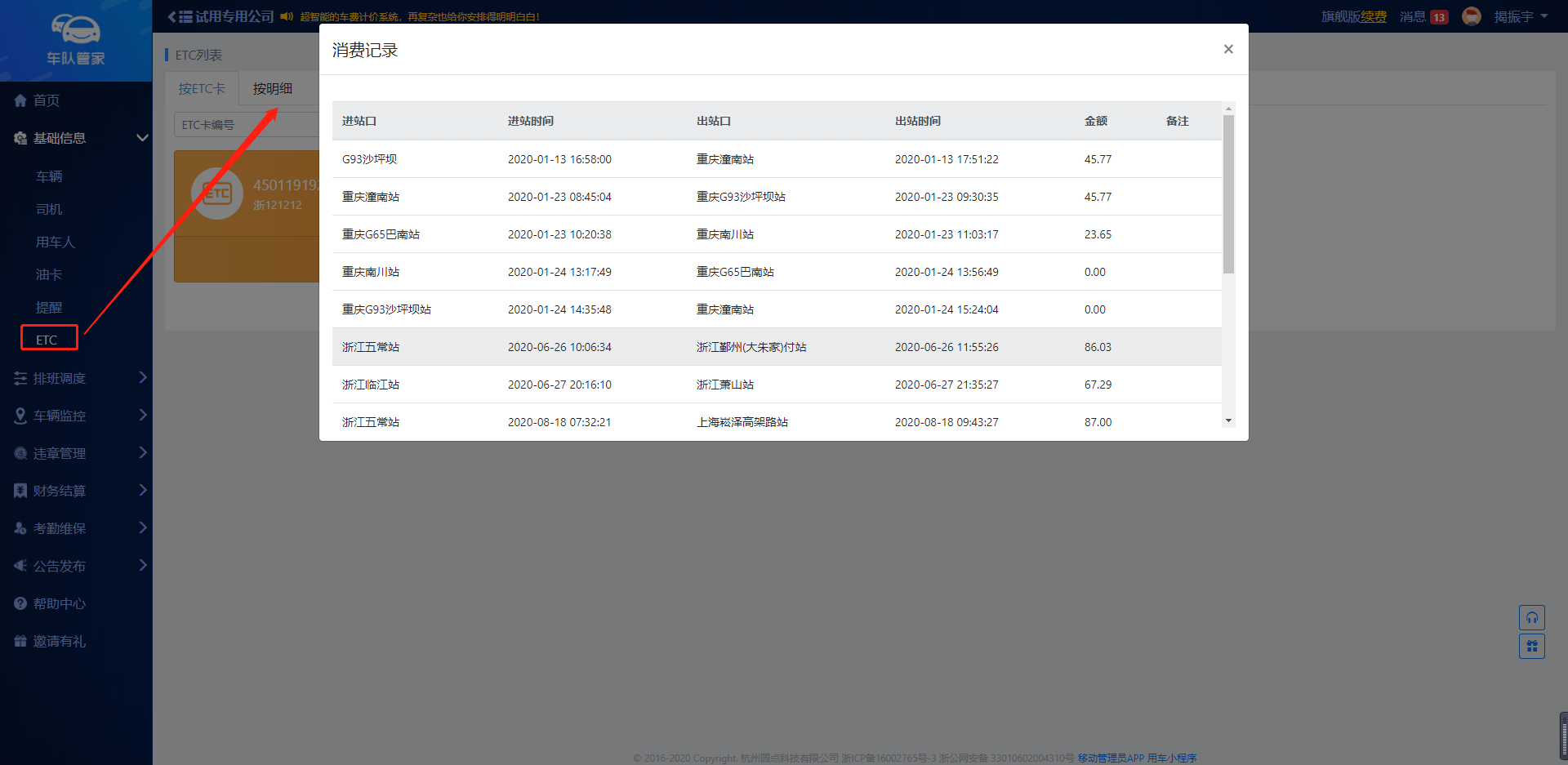 车队管家正在陆续接入各省的ETC数据,高速公路收费数据可以实时同步至车队管家系统,同时费用明细也会在财务模块中自动更新,实现一站式车辆管理。