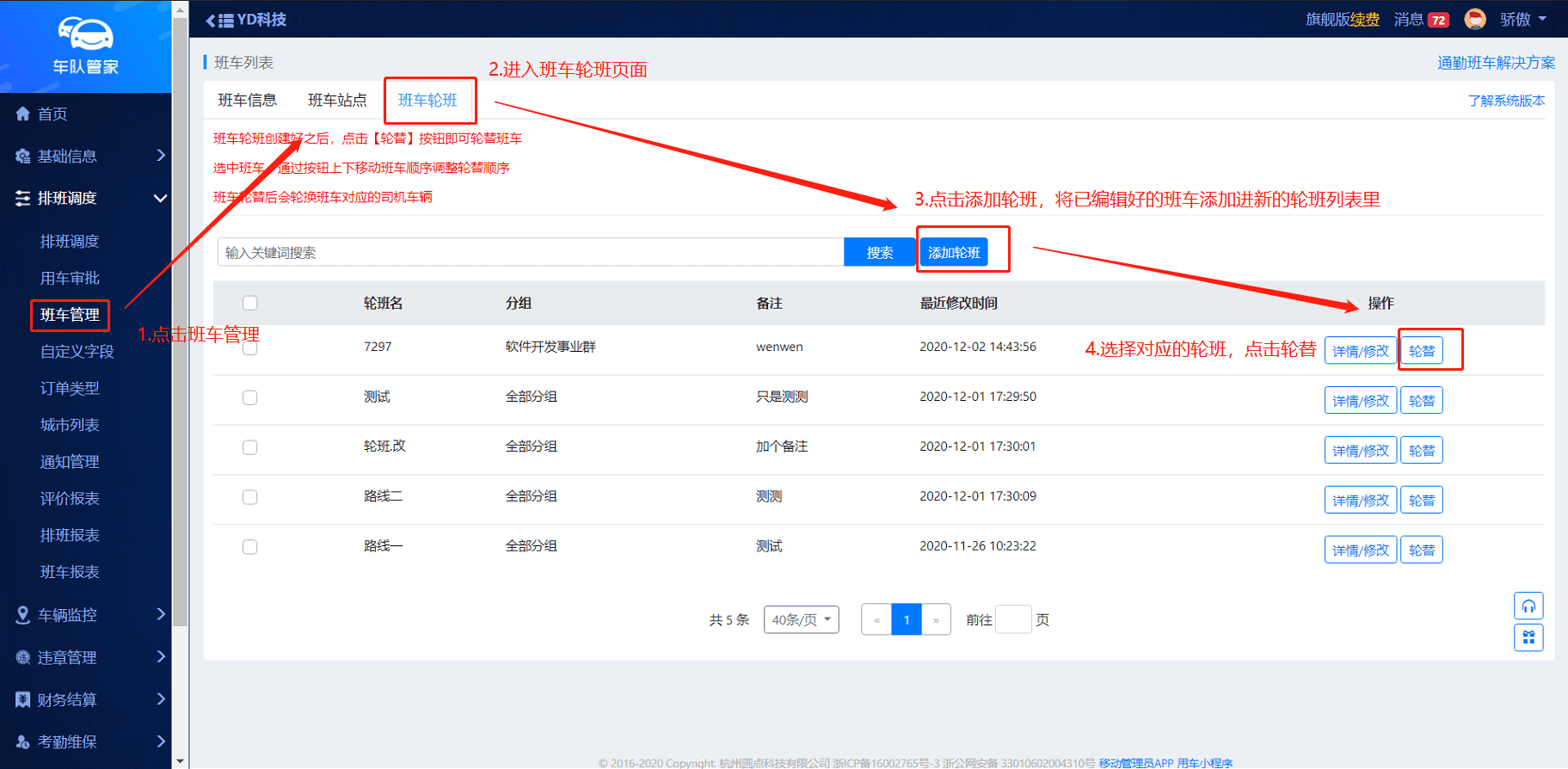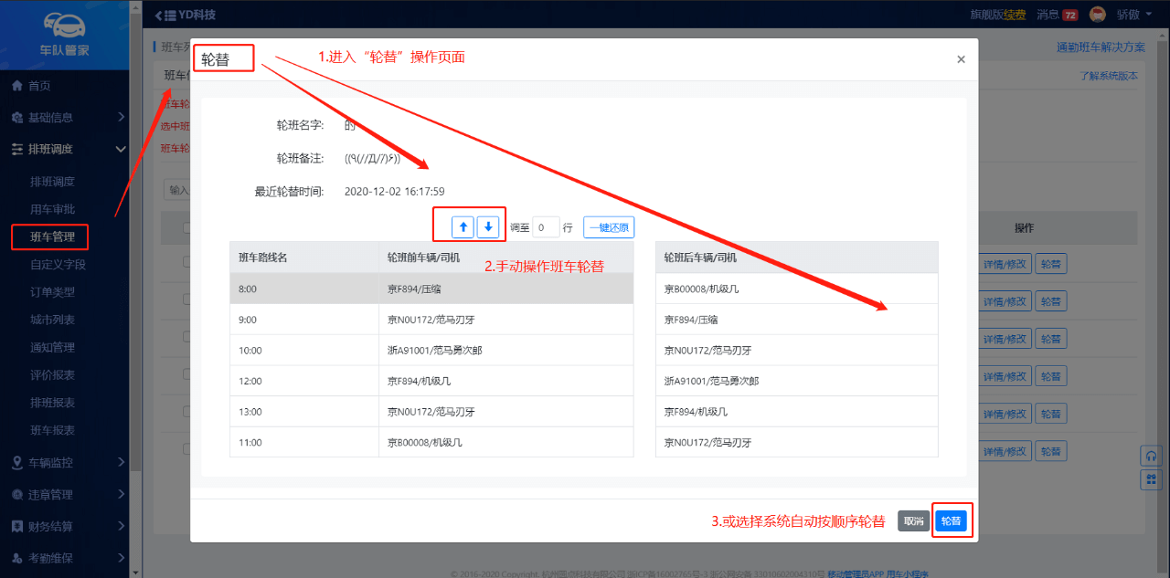 路径:管理员网页端--排班调度--班车管理--班车轮替