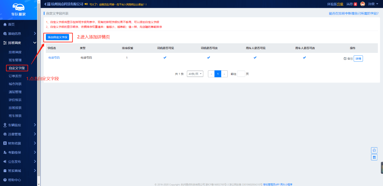路径:管理员PC端--排班调度--自定义字段--添加自定义字段