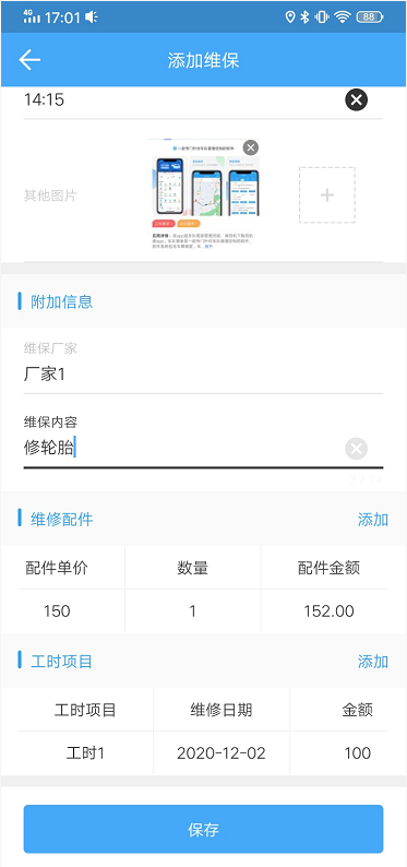 “添加维保”路径:管理员APP--维保报表--右上角“添加”