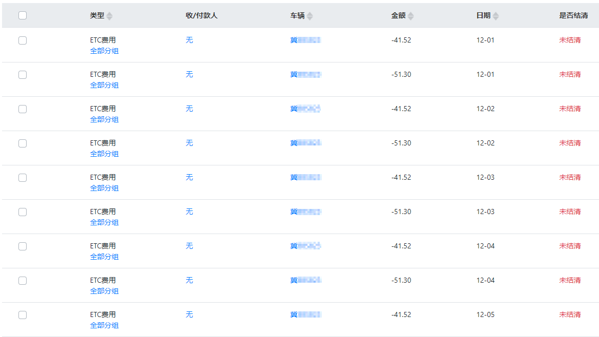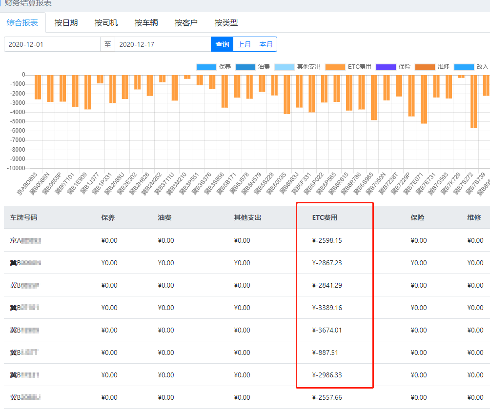 在更新完ETC数据后,后台将实时同步至财务模块,费用数据一目了然(如下图):