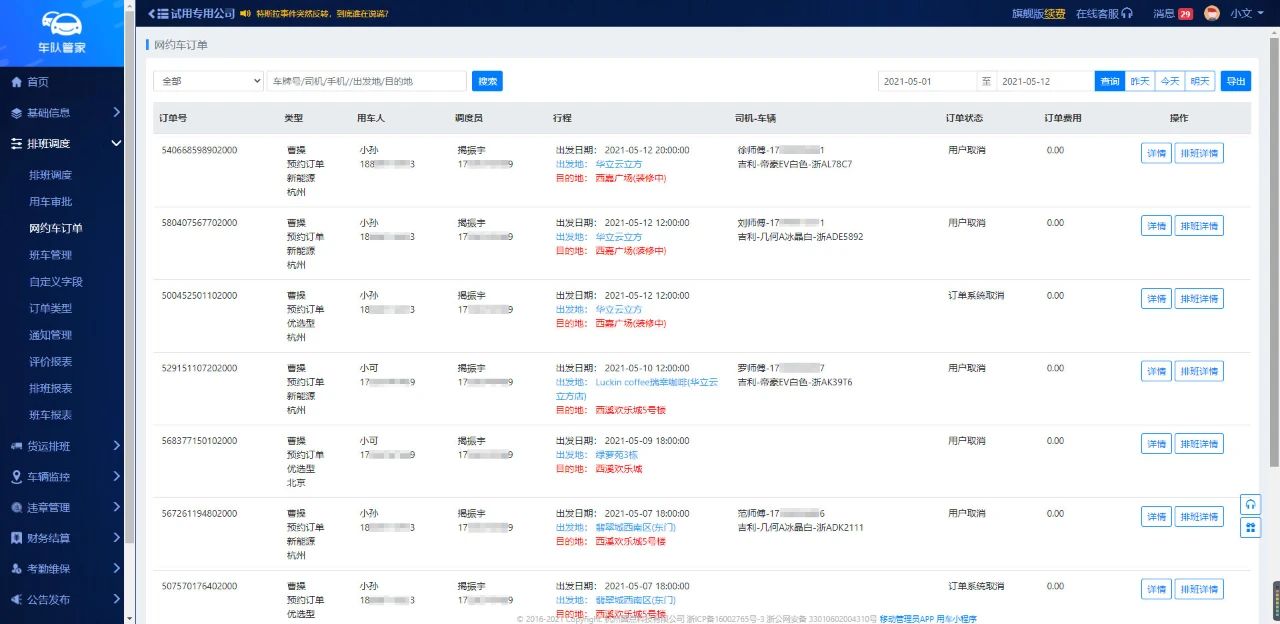 在企业出行云服务方案中,管理人员可对企业内部自有车辆和外部差旅用车进行同平台统一化管理,通过网约车订单列表实现自动对账,提升企业财务工作效率,优化员工报销流程。
