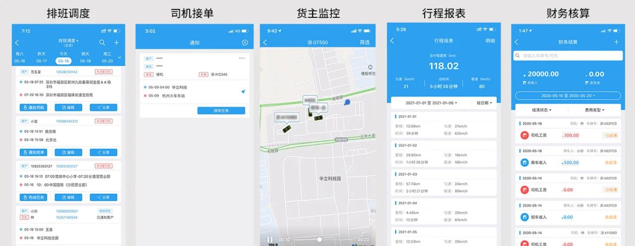 ●管理员端在线派单,实时查看视频监控,车辆轨迹,自动生成里程数据;