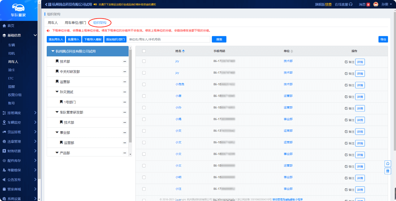 车队管家支持与企业微信、泛微等OA系统无缝同步组织架构相关数据,在企微生态内,企业可以实现办公平台统一化管理,打造更专业的数字化车队管理解决方案。