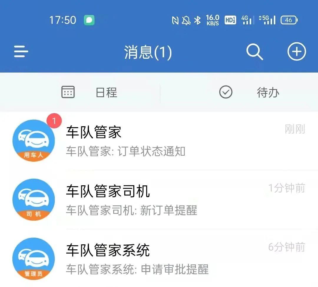 为了提升企业员工工作效率,现车队管家消息提醒已联动企业微信后台,用车人、管理员、司机可及时接收订单通知,更智能,更省心。