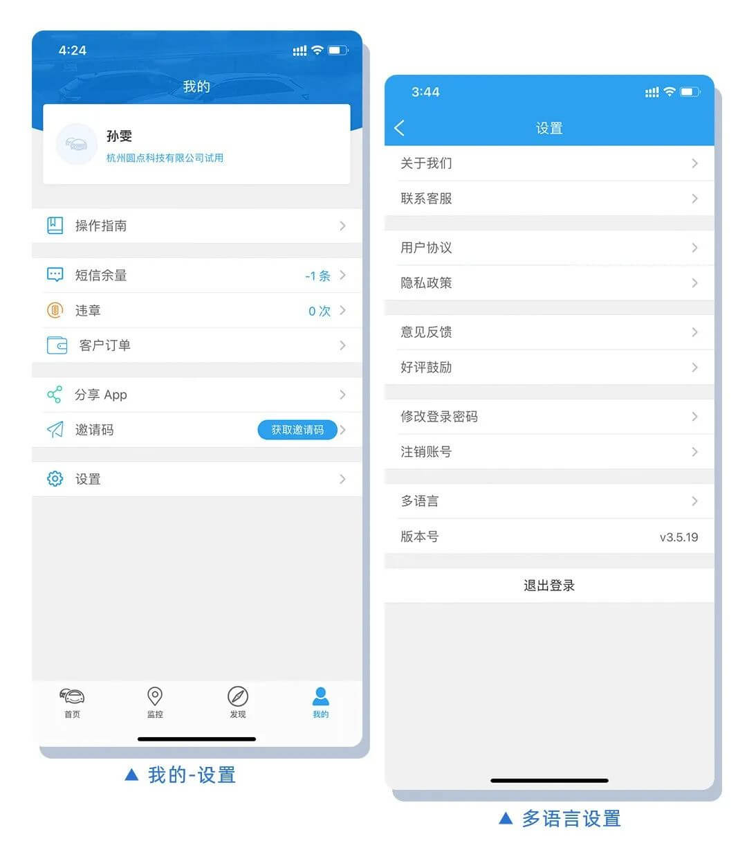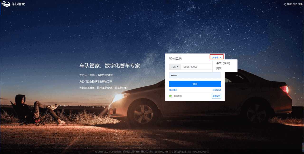 为了满足海外用户的使用需求,现车队管家支持多语言系统,管理员PC端、APP端,司机APP端都可以进行中英文一键切换。
