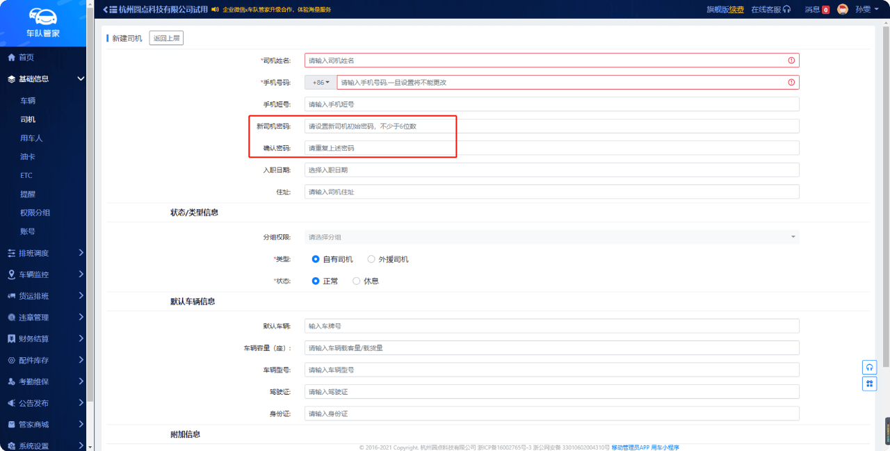 为避免因第三方验证码延迟发送的风险,管理员、司机登录APP端支持密码登录。