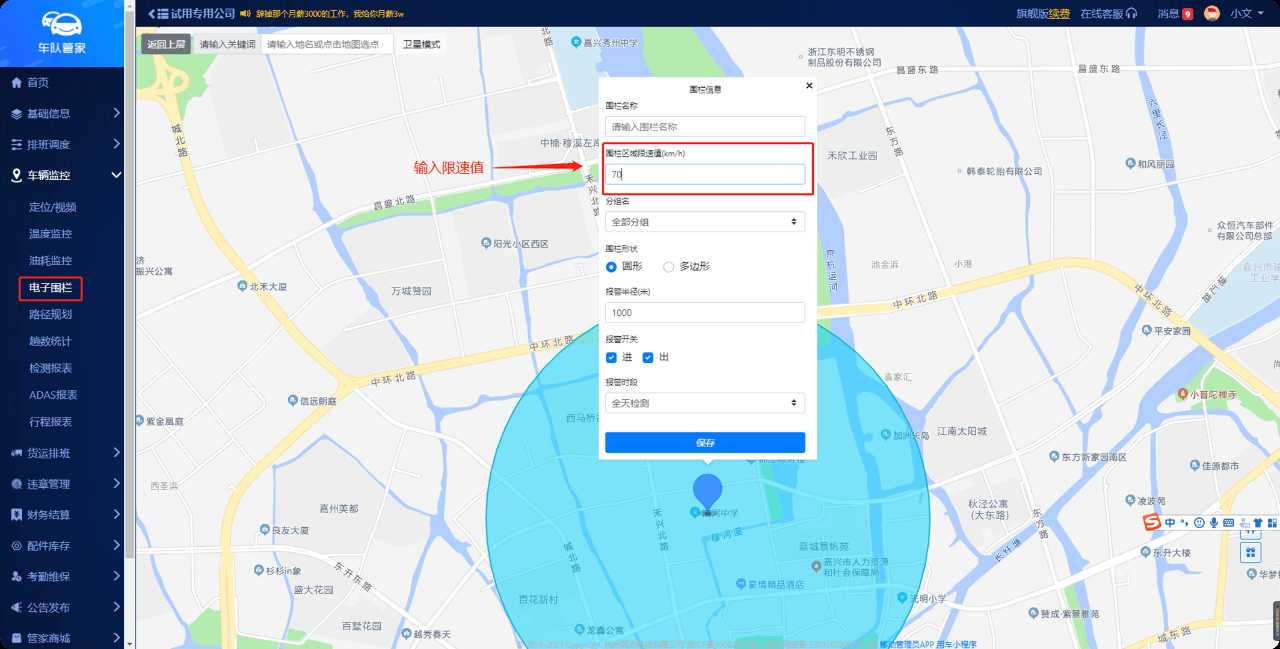 凡是安装GPS定位监控设备的车辆,管理员可以在「电子围栏」中设置区域限速报警,保障行车安全。